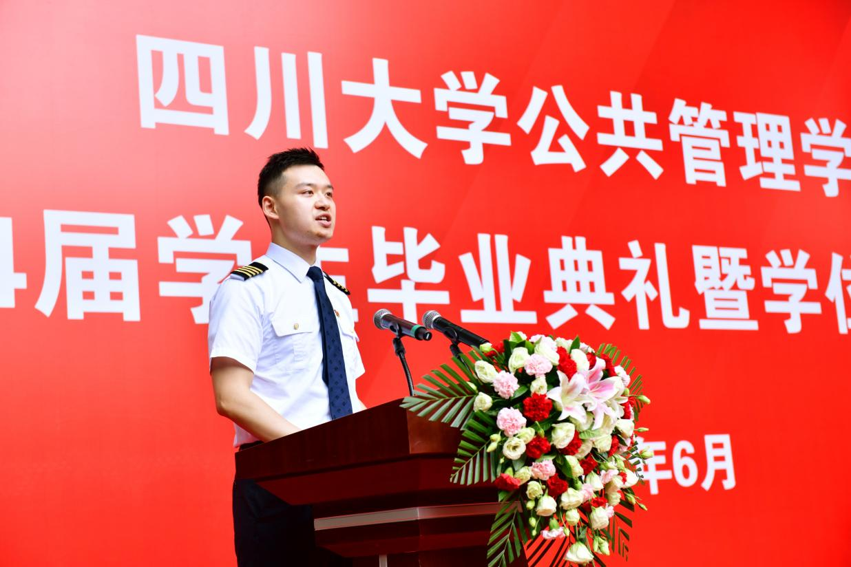 校友代表2012级行政管理硕士研究生、成都经开资本运营集团有限公司党委副书记张亚珠告诫学弟学妹,要在未来的学习和工作中着重培养自身的实践能力、反思能力和心理调适能力。无论遇到什么困难,都要忠于自己、善待他人;要常怀感恩之心,常念父母之恩、恩师之情、同窗之谊,并将感恩之心传递下去。
