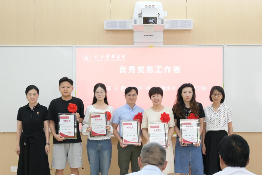 院长夏志强宣读学院表彰决定,全院6个党支部、7名党务工作者、43名共产党员受到表彰。