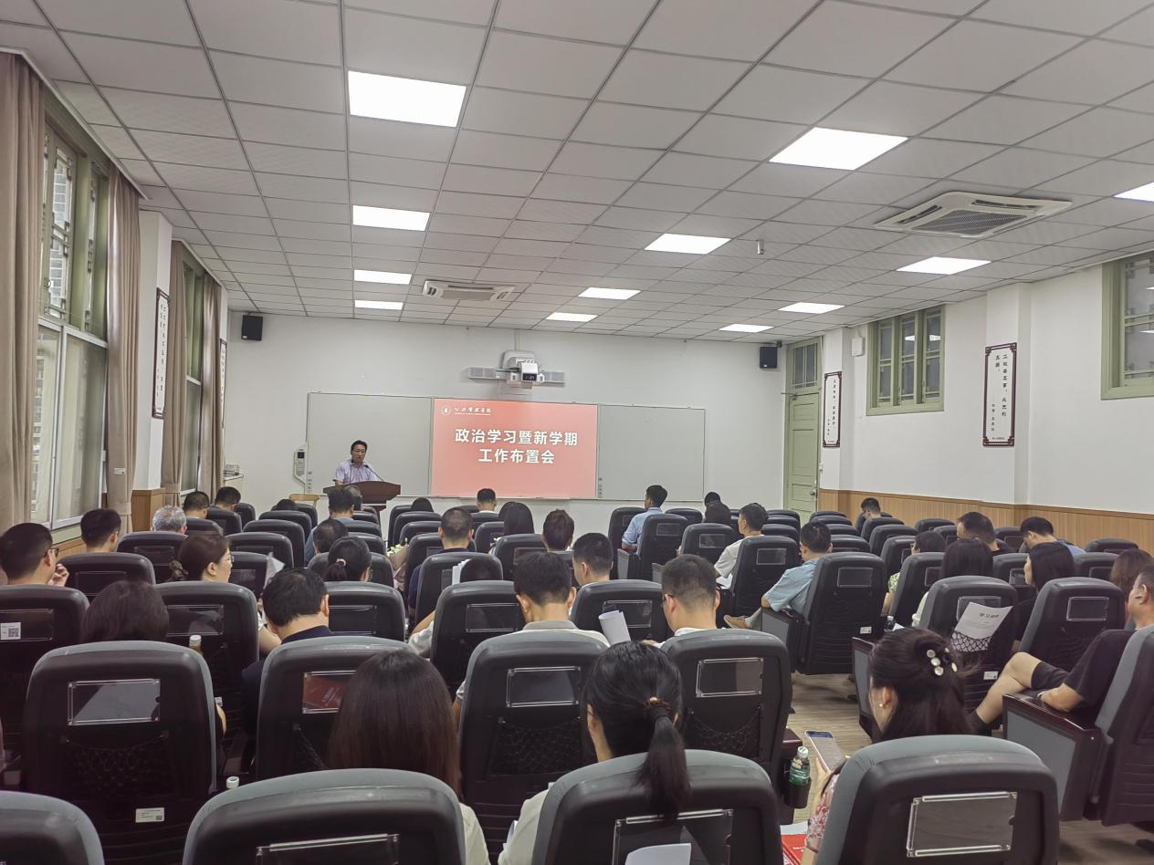 9月5日,PA视讯游戏官网在PA视讯游戏官网望江校区萃文楼博文会议室召开政治学习暨新学期工作布置会。学院领导班子成员、党委委员、工会主席、专职组织员、系主任、全院教职员工100余人参加了此次会议。会议由学院党委书记韩杰主持。