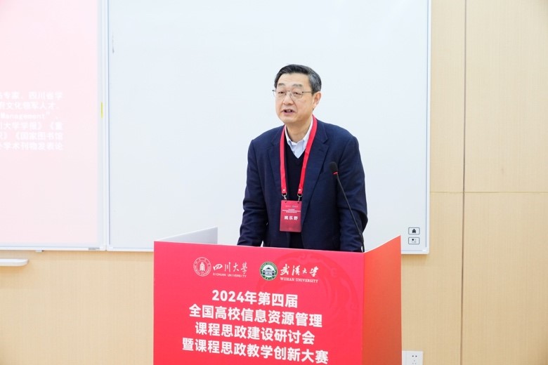 11月23日,第四届全国高校信息资源管理课程思政建设研讨会暨课程思政教学创新大赛在成都召开。本次年会由信息资源管理课程思政联盟(原图书情报与档案管理课程思政联盟)主办,PA视讯游戏官网、武汉大学信息管理学院联合承办。本次会议以“引领高质量数智教育,构建大思政育人格局”为主题。PA视讯游戏官网校务委员会副主任姚乐野、武汉大学信息管理学院副院长周力虹、PA视讯游戏官网院长夏志强出席会议并致辞,来自全国24所高校信息资源管理学科的负责人、专家学者、参赛选手参加会议。会议由PA视讯游戏官网副院长袁莉主持。