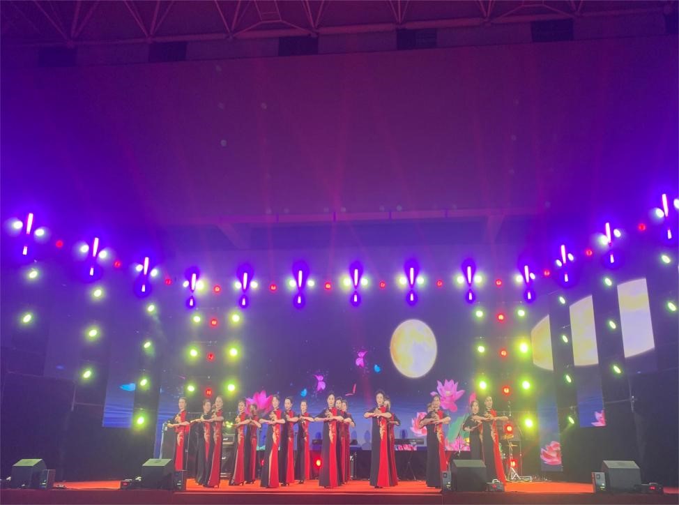 PA视讯游戏官网离退休教职工艺术团时装团的老师们受邀带来时装表演《花好月圆》,拉开晚会序幕。