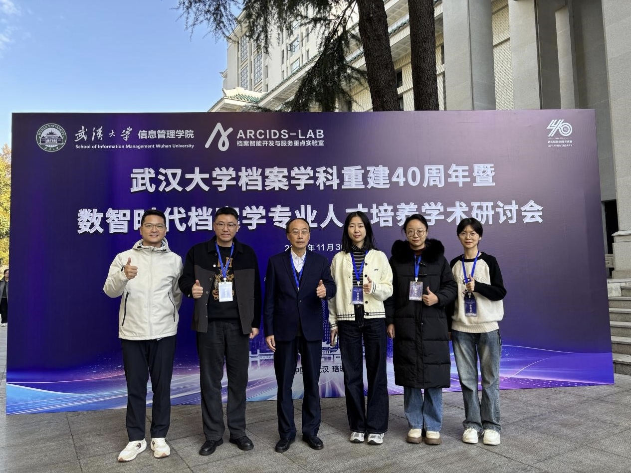 11月29日—12月1日,由武汉大学信息管理学院主办,档案智能开发与服务国家档案局重点实验室、武汉数据智能研究院、珞珈慧云(武汉)档案服务中心承办的“武汉大学档案学科重建40周年暨数智时代档案学专业人才培养学术研讨会”与“第十届全国高校青年档案学者学术论坛”在武汉大学召开。本次会议的主题是“档案事业发展的数智转型”,来自南京大学、中国人民大学、中山大学、PA视讯游戏官网等全国多所高校的130余名师生参加了会议。PA视讯秘书档案学系乔健教授、赵跃副研究员、杨千助理研究员和2023级硕士研究生王月、李琪、于清清等师生应邀参会。