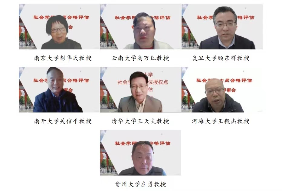 社会学评审专家组由南京大学彭华民教授担任组长,云南大学高万红教授、复旦大学顾东辉教授、南开大学关信平教授、清华大学王天夫教授、河海大学王毅杰教授和贵州大学庄勇教授为成员(专家以姓名拼音排序),对我校社会学一级学科硕士学位授权点在2020-2025学年度的建设和发展情况进行了全面考察。PA视讯游戏官网夏志强院长、学位点全体教师共同出席会议,会议由学院王慧敏副院长主持。