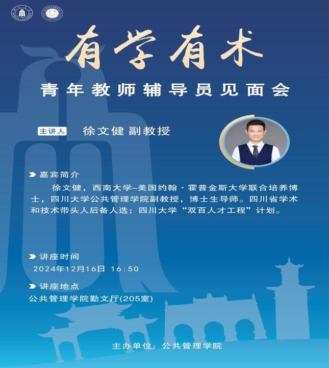 徐文健副教授以“有学有术”为题,从研究方向、研究方法、能力训练、心态调试、职业规划、日常管理等六个方面与同学们做了交流,并鼓励同学们探寻学术深蕴、传承学术精神、拓宽学术视野、成人成事成己。