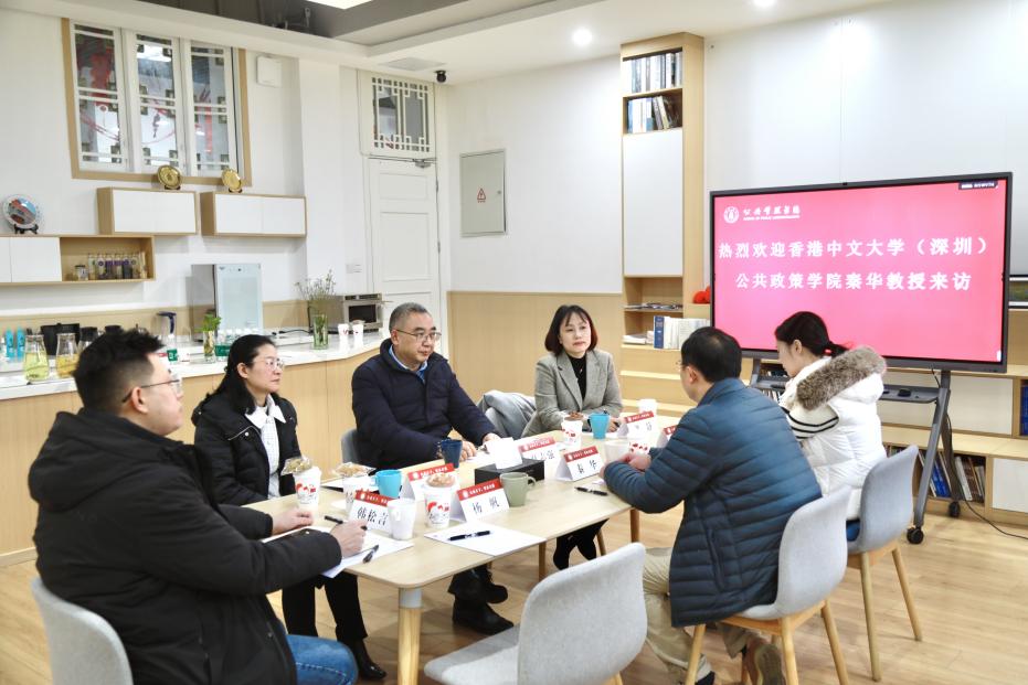2025年1月14日,香港中文大学(深圳)公共政策学院秦华副教授来访PA视讯并进行座谈交流。PA视讯院长夏志强教授、党委副书记罗亚玲教授、黄静教授、曾路遥副教授出席了本次活动。