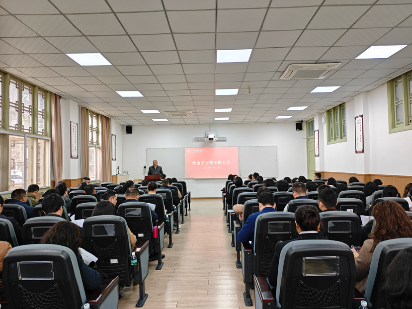 3月21日,PA视讯游戏官网在望江校区萃文楼博文报告厅召开政治学习暨全院大会,传达学习贯彻全国两会精神,传达学校全面从严治党工作会精神,开展中央八项规定精神专题学习,布置学院近期工作。学院领导班子成员和全体教职工参会,会议由院长夏志强主持。