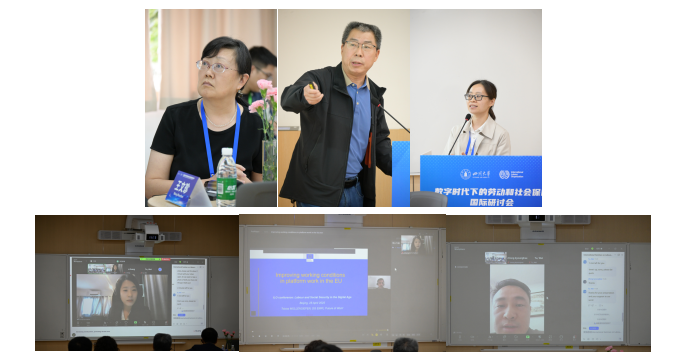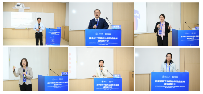 在会议主旨报告阶段,何文炯指出,数字化时代的一个重要特征是非正规就业多,应着力探讨面向全民的社会保障项目;刘军胜详细介绍了中国在新就业形态劳动者权益保障方面的政策与实践;国际劳工组织高级专家佩索·安娜罗莎(Pesole, Annarosa)介绍了监管平台工作的全球方法,包括扩大劳动和社会保障、监管平台工作时间、算法使用透明等;中国人民大学林嘉教授介绍了新就业形态劳动者权益保障的相关立法政策,强调当前的立法工作应着重解决劳动关系认定、算法管理下的劳动基准等问题;PA视讯游戏官网蒲晓红教授介绍了新就业形态劳动者基本养老保险的制度设计和现实情况,并指出从制度全覆盖到人员全覆盖尚有距离。主旨报告由PA视讯游戏官网党委副书记罗亚玲教授主持。