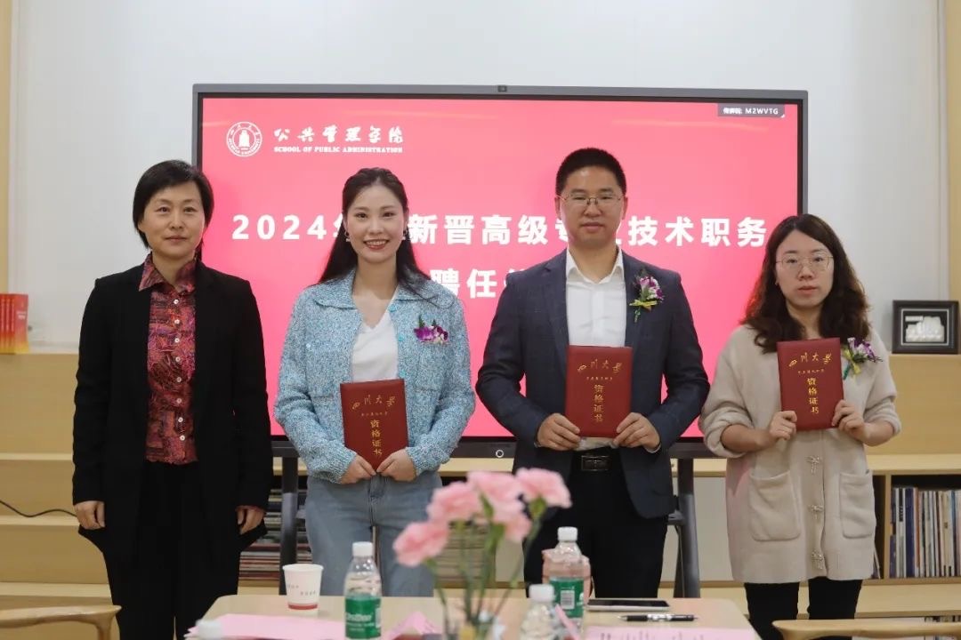 教授代表吴敏分享教学和科研经历,强调坚持和勇气的重要性,希望年轻教师以身作则,传承学术精神。张晓娟代表新晋高级专业技术职务教师发言,表示将以此次职称晋升为新的起点,勇攀科研高峰;传承互帮互助精神,为学校学院和社会作出贡献。院长夏志强指出,职称晋升是一个新的起点,老师们也将承担更多责任,希望新晋高级专业技术职务教师在人才培养上充当主力军,在科学研究中成为中坚力量,在社会服务中积极咨政建言,推动学院各项事业高质量发展。