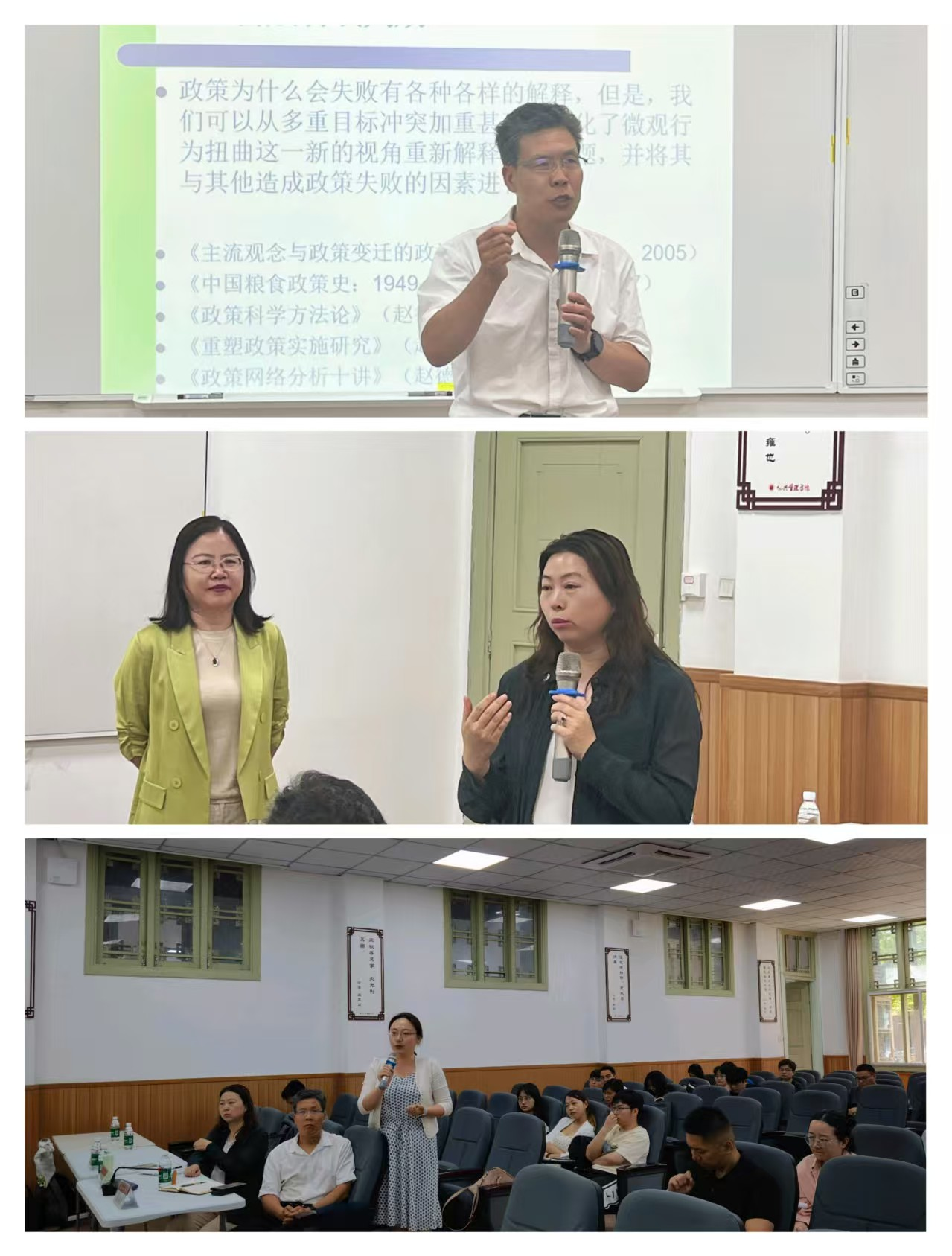 在交流环节,两位与谈人分别从经济学和社会学视角探讨了社会政策的生成、评估和优化问题,并围绕返乡青年创业等具体政策问题开展了深入交流。最后,讲座在热烈的掌声中圆满结束。