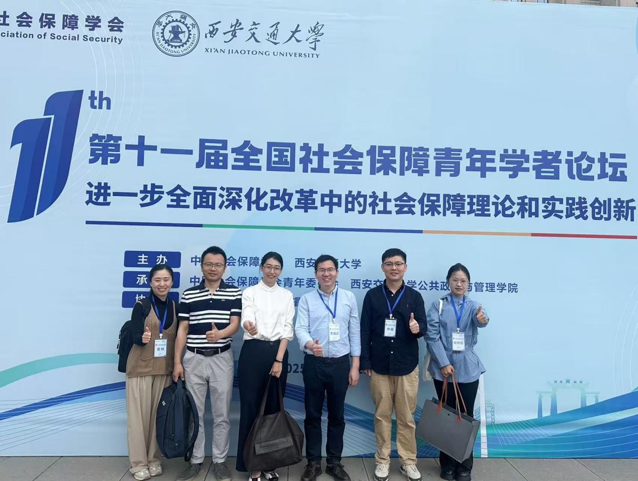 2025年5月25日,第十一届全国社会保障青年学者论坛在西安交通大学举办。本届论坛主题为“进一步全面深化改革中的社会保障理论和实践创新”,旨在增进青年学者团结协作,共同推动我国社会保障事业发展。PA视讯劳动与社会保障系主任张浩淼教授、黄国武副教授、杨帆副教授、曹杨副教授、田益豪副教授和博士研究生姚明霄参会。在主论坛会议与各分论坛会议上,张浩淼教授进行了主旨报告,黄国武、田益豪、曹杨老师以及博士研究生姚明霄分别就各自研究领域进行了专题发言,与参会学者展开深入交流。