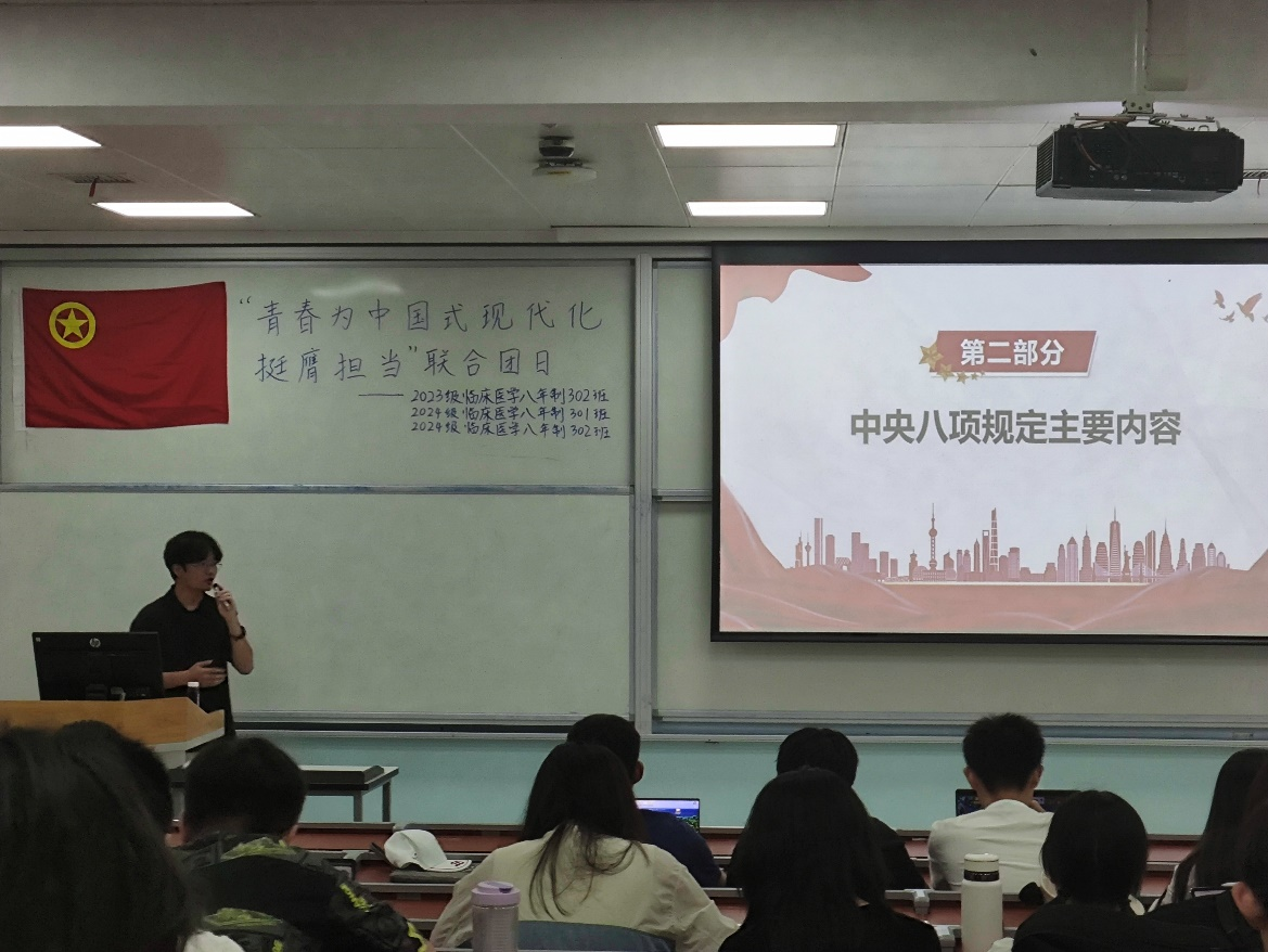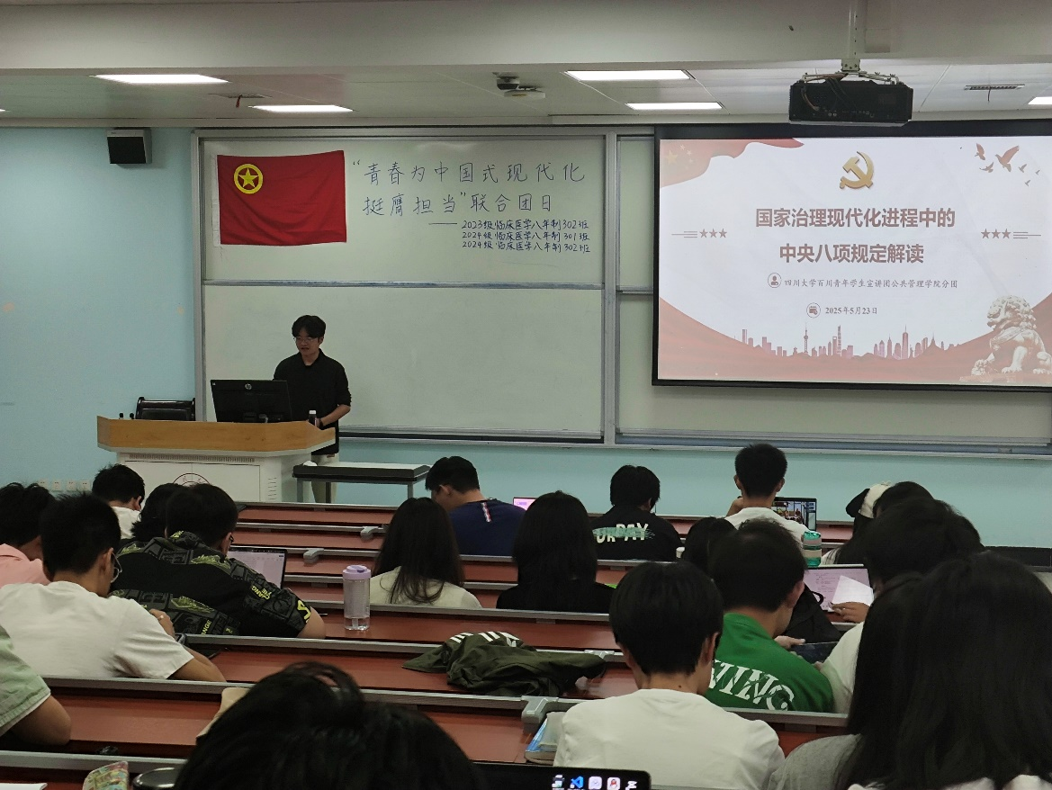 为深入学习贯彻中央八项规定精神,搭建理论学习与实践认知的贯通平台,2025年5月23日,PA视讯游戏官网百川青年学生宣讲团PA视讯游戏官网分团走进PA视讯游戏官网华西临床医学院本科团支部,开展“国家治理现代化进程中的中央八项规定解读”主题宣讲活动,宣讲团成员刘伟同志担任主讲。