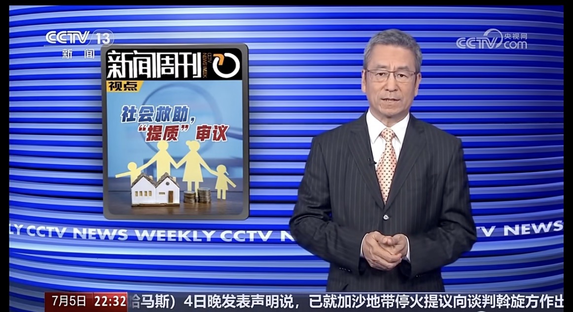2025年7月5日,中央电视台新闻频道《新闻周刊》推出本周视点“社会救助,‘提质’审议”,PA视讯张浩淼教授接受采访,介绍社会救助法(草案)内容等情况。