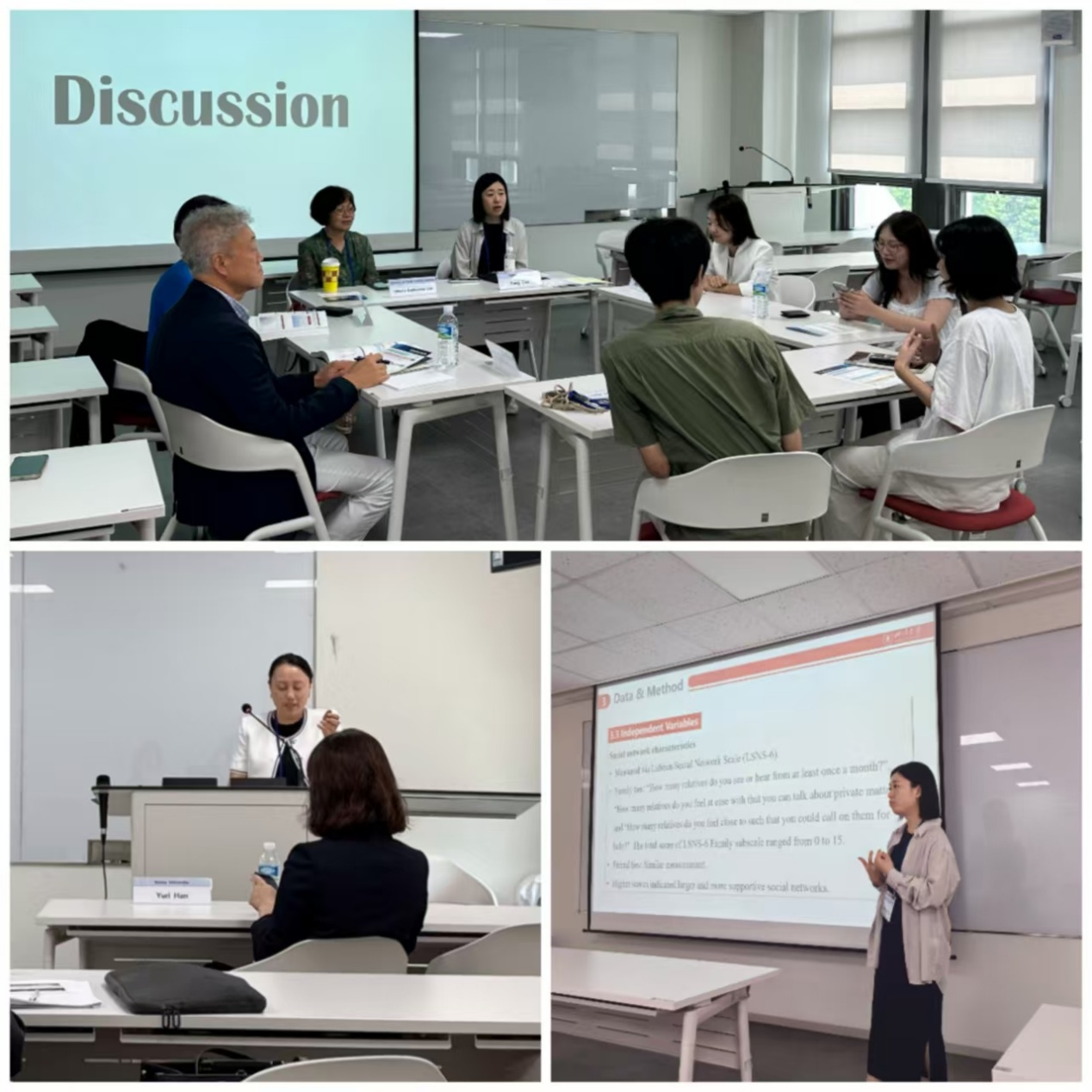 2025年8月21-22日,由高丽大学老龄社会研究院主办的“超老龄化社会与数字化转型“国际研讨会在高丽大学成功举办。来自中国、韩国、美国、新加坡、日本等国的专家学者参与了此次会议,会议围绕人口老龄化与数字化同步演进进行了精彩的汇报和讨论。PA视讯王慧敏副院长、黄静教授、曹杨副教授受邀参与了此次会议。王慧敏副院长与黄静教授作为论坛点评人,对参会学者的发言进行了点评,并分享了中国数字友好型老龄社会治理的典型案例与优秀经验。曹杨副教授在分论坛作了题为”中国老年人数字社会支持网络构建“的发言,指出数字社会支持网络已然形成,但与传统社会支持网络的圈层结构存在差异,老年人良好的传统社会支持网络能够有效赋能数字社会支持网络的形塑。
