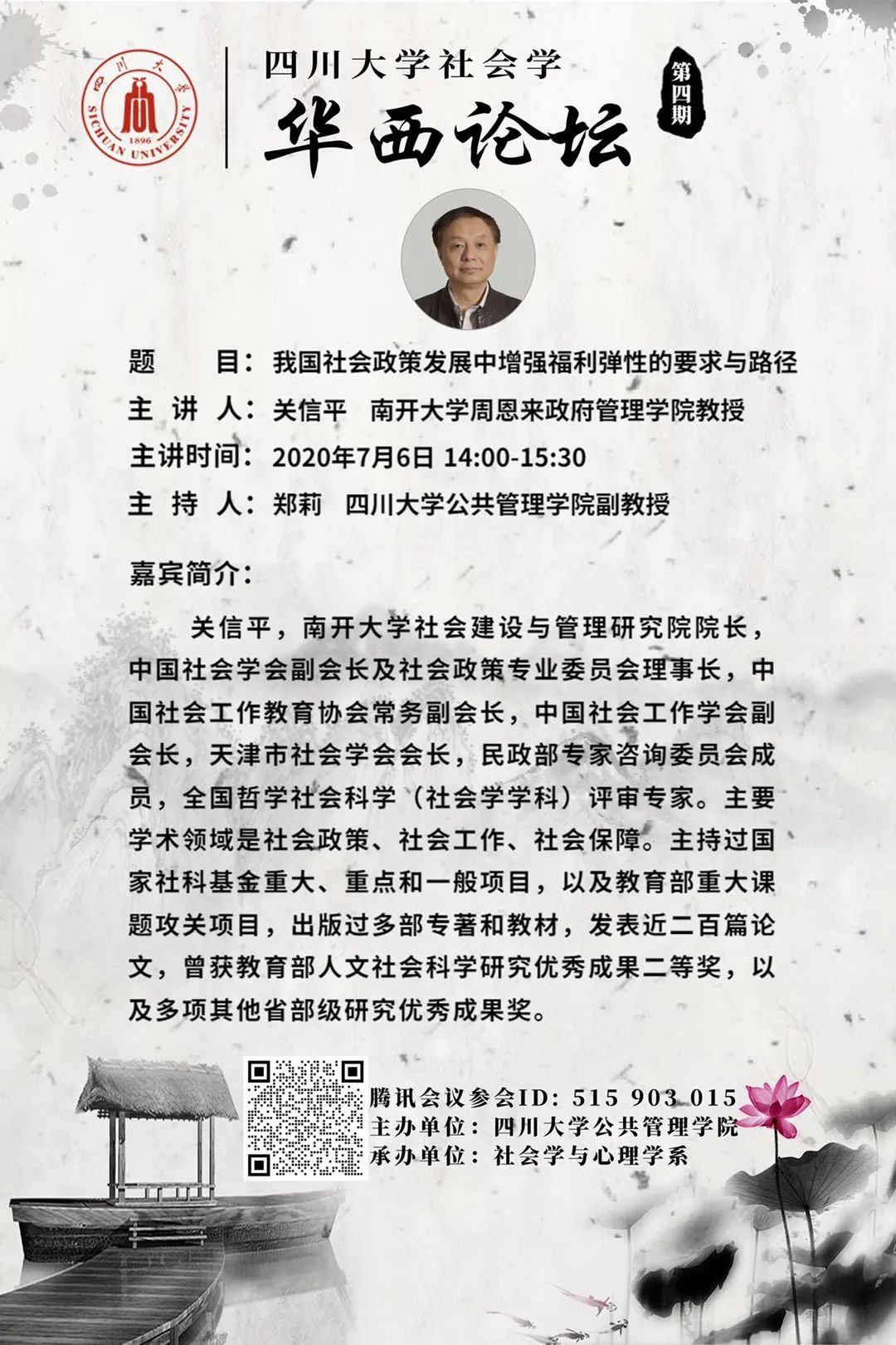 关信平,南开大学社会建设与管理研究院院长,中国社会学会副会长及社会政策专业委员会理事长,中国社会工作教育协会常务副会长,中国社会工作学会副会长,天津市社会学会会长,民政部专家咨询委员会成员,全国哲学社会科学(社会学学科)评审专家。主要学术领域是社会政策、社会工作、社会保障。主持过国家社科基金重大、重点和一般项目,以及教育部重大课题攻关项目,出版过多部专著和教材,发表近二百篇论文,曾获教育部人文社会科学研究优秀成果二等奖,以及多项其他省部级研究优秀成果奖。