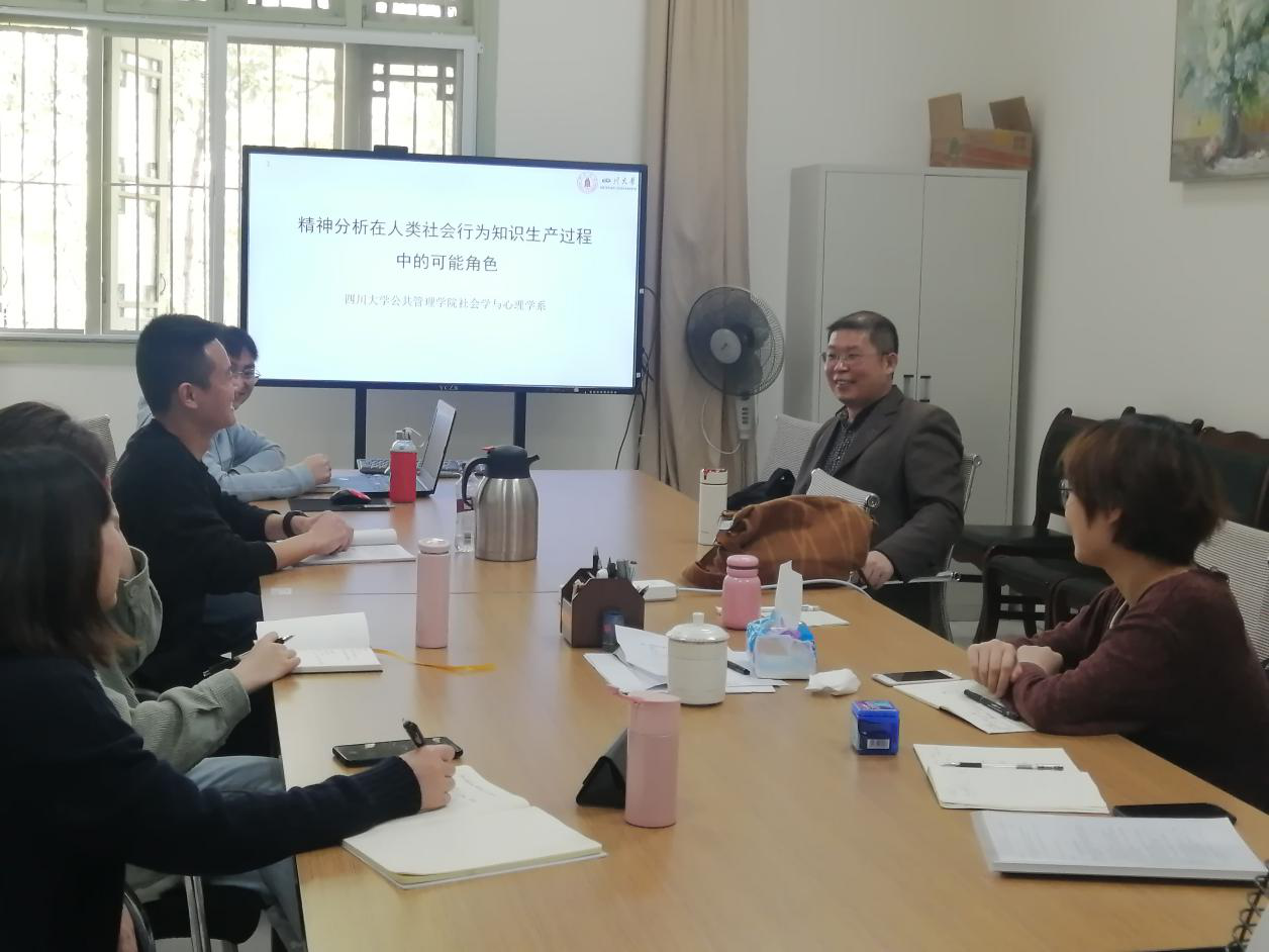 3月29日,社会学与心理学系举办了“精神分析与社会心理学研究的交叉融合”研讨会。本次研讨会由社会学与心理学系谷建岭、徐文健、刘传军三位老师联合组织,其他与会者主要包括PA视讯游戏官网社会学与心理学系精神分析方向的在读研究生。