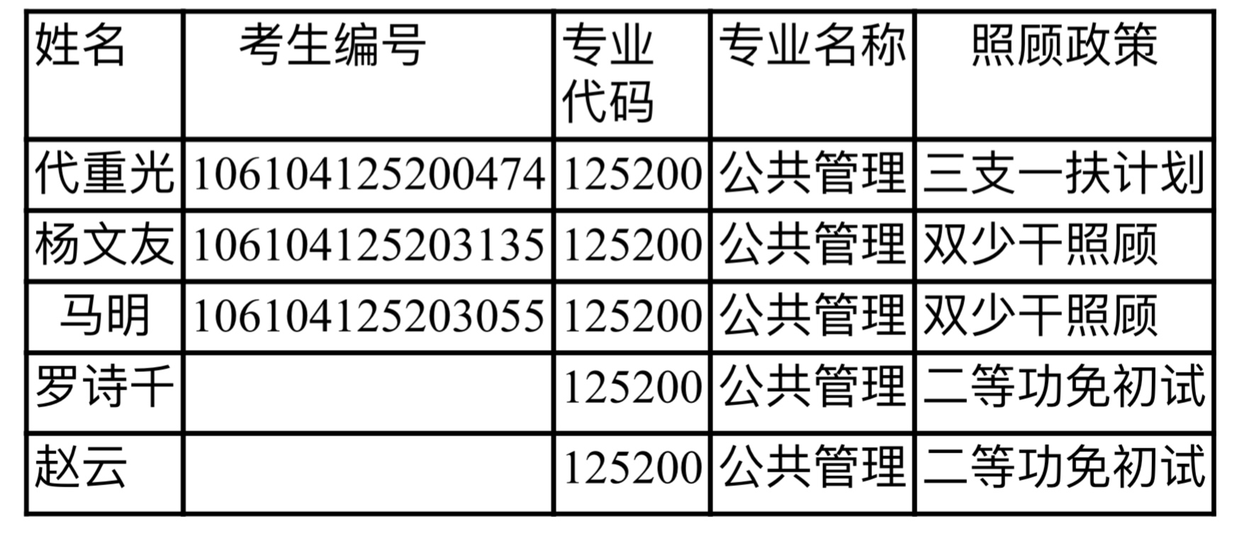 按教育部相关政策及提供的名单,现将报考PA视讯符合享受照顾政策的考生名单公示如如下: