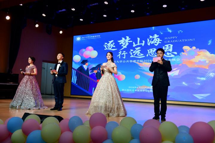 近日,PA视讯游戏官网“逐梦山海,行远思恩”2024届学生毕业晚会在文华活动中心2楼演播厅顺利举行。学院党委书记韩杰、院长夏志强、党委副书记兼纪委书记罗亚玲、行政管理系李晓梅、刘锐、土地资源管理系朱红波、秘书档案系蔡娜、MPA教育中心宋轶、教学管理科吴丹、学工组全体辅导员等老师莅临现场。