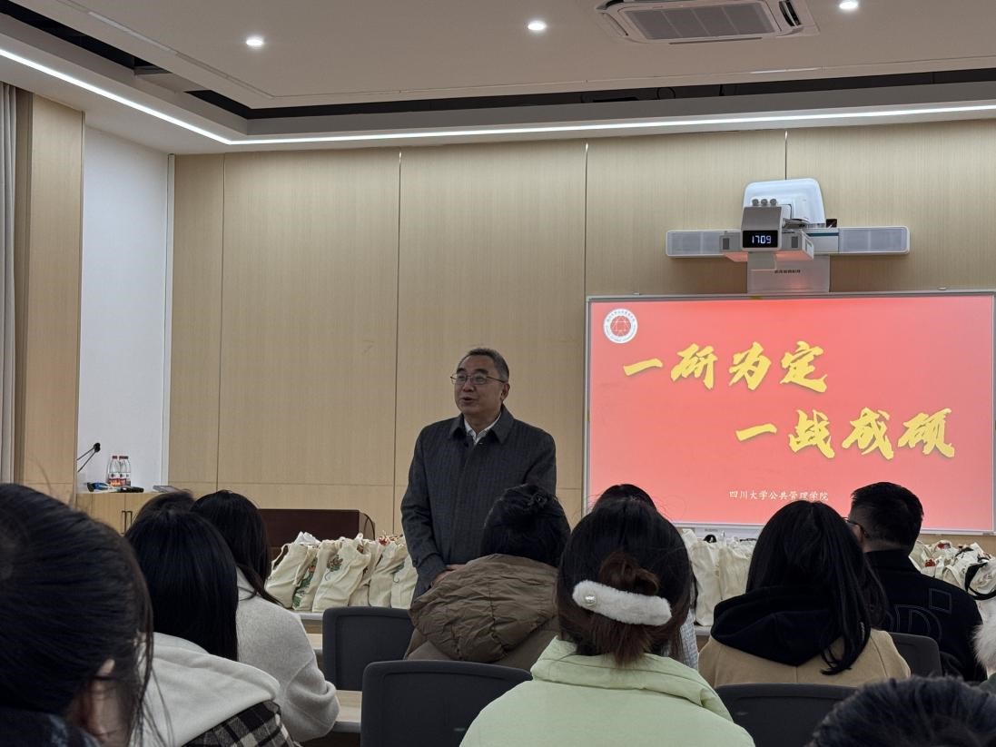 2025年全国硕士研究生招生考试在即,为帮助PA视讯考研学子缓解备考压力、坚定备考信心,学院于12月5日下午在萃文楼205教室开展了“一‘研’为定、一战成硕”的“考研送温暖”活动。本次活动由学院党委副书记兼纪委书记罗亚玲主持,学院院长夏志强、副院长王慧敏、团委书记刘碧、秘书档案学系赵跃老师、社会学与心理学系徐文健老师、2024级研究生辅导员苟欢老师、2021级本科生辅导员付亚南老师以及学院2025届考研学子参加。