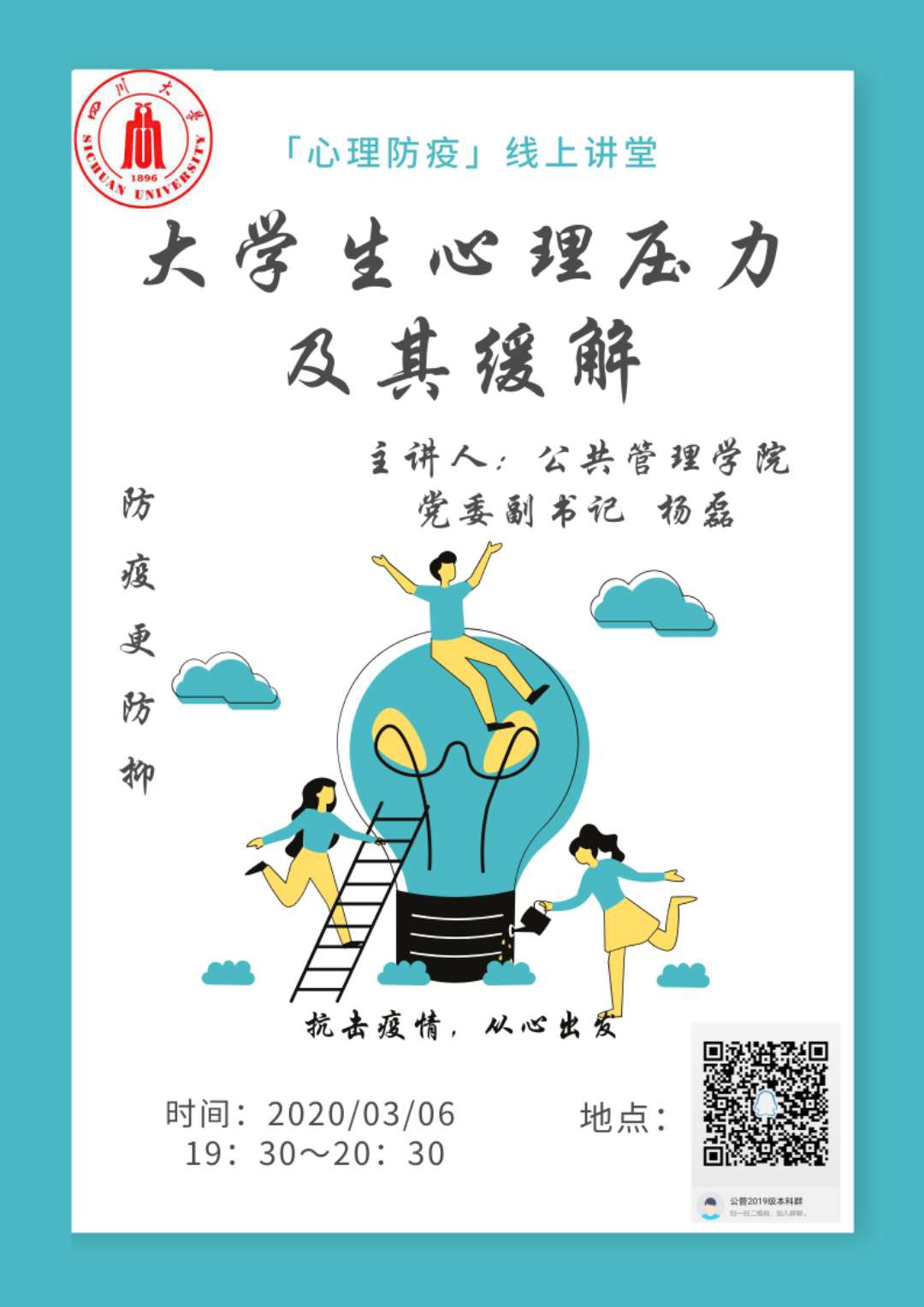 2020年3月6日晚7:30,PA视讯游戏官网党委副书记杨磊老师在QQ群课堂里为2019级本科同学作了题为“大学生心理压力的宣泄与疏解”的线上讲座。本次讲座也拉开了“志学防疫”系列线上讲座的序幕。
