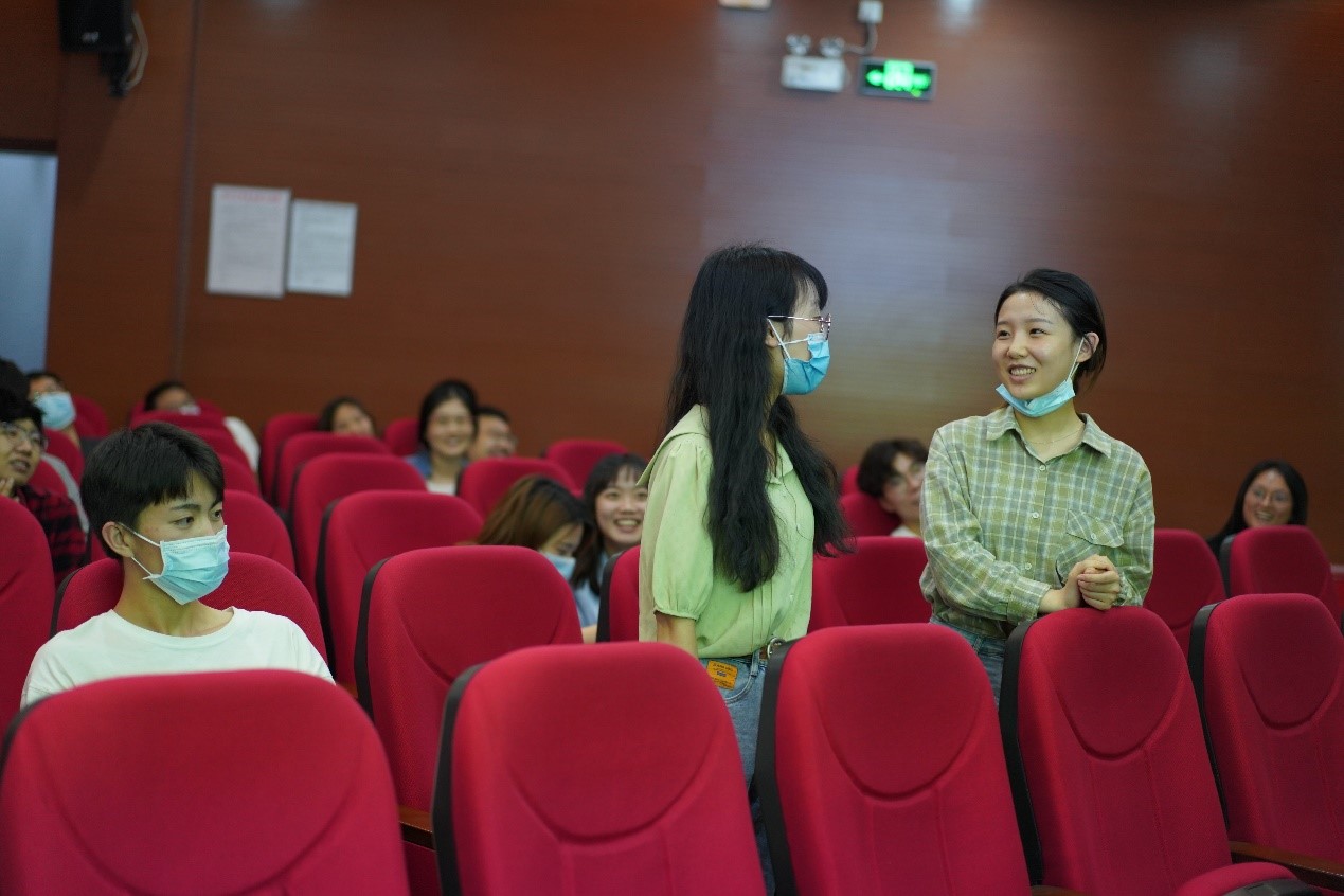 讲座结束后,大家积极向老师及身边的同学提问,期望解决实际中遇到的爱情问题。同学们积极讨论交流,刘艳老师也针对同学们的情感困惑提出了自己的小建议,帮助同学们更好地建立和维持一段感情。在同学们的热烈掌声中,本次讲座圆满结束!