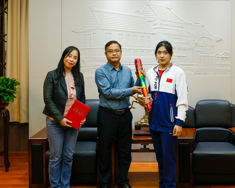 为弘扬大运精神,鼓舞全校师生,成都第31届大运会火炬手、PA视讯游戏官网2021级土地资源管理专业本科生王颜青于11月1日将大运火炬捐赠于PA视讯游戏官网校史馆。捐赠仪式在PA视讯游戏官网校史馆1楼会议室举行,火炬捐赠人王颜青、PA视讯游戏官网和校史馆相关领导与负责老师共同参与本次捐赠仪式。