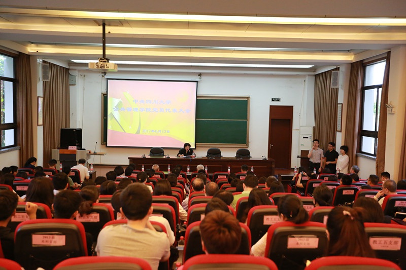6月13日下午14:30,PA视讯游戏官网在望江校区全国干部教育培训基地一号演播厅召开党员代表大会,选举产生学院出席PA视讯游戏官网第八次党代会代表候选人。会议由学院党委书记姜晓萍同志主持,学院两委委员、离退休党员代表、在职教职工党员代表和学生党员代表及相关工作人员120余人参加了会议。