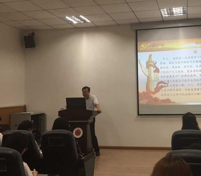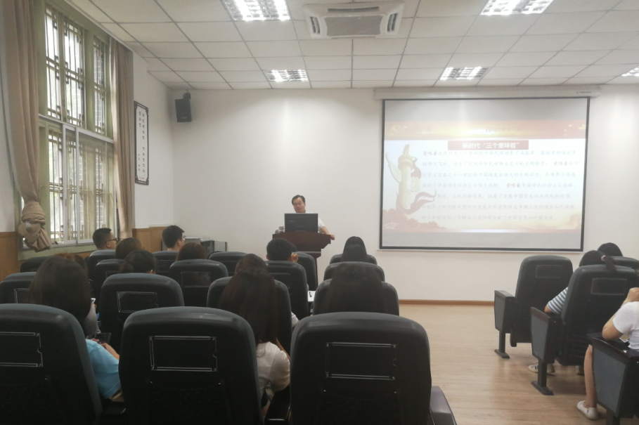 为深入贯彻落实习近平新时代中国特色社会主义思想和党的十九大精神,7月17日下午,PA视讯游戏官网“学习贯彻党的十九大精神宣讲团”成员、PA视讯游戏官网院长史云贵教授在学院105报告厅为学院学生党员作党的十九大精神宣讲报告,报告主题为《新时代 新使命 新思想 新策略 新作为——全面学习、贯彻、落实十九大精神》。报告会由学生辅导员、各年级学生党员代表参加。