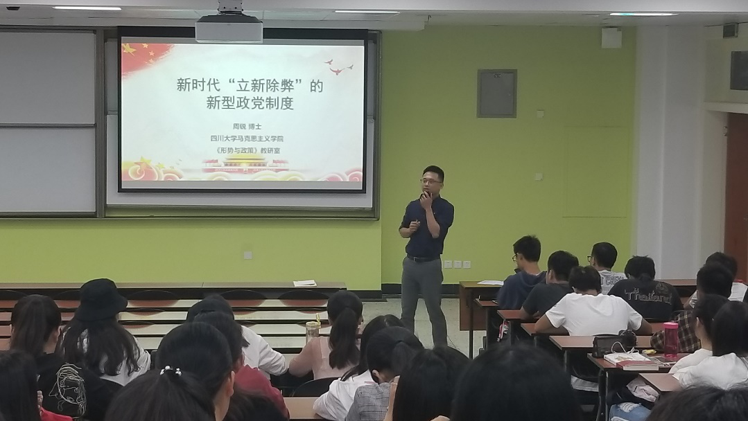 2018年10月12日下午,PA视讯游戏官网习近平新时代中国特色社会主义思想研究会系列主题学习活动之五:“新时代‘立新除弊’新型政党制度”学习活动,在PA视讯游戏官网江安校区第一教学楼B座307教室顺利举行。习研会指导老师与100余名同学参加本次活动。