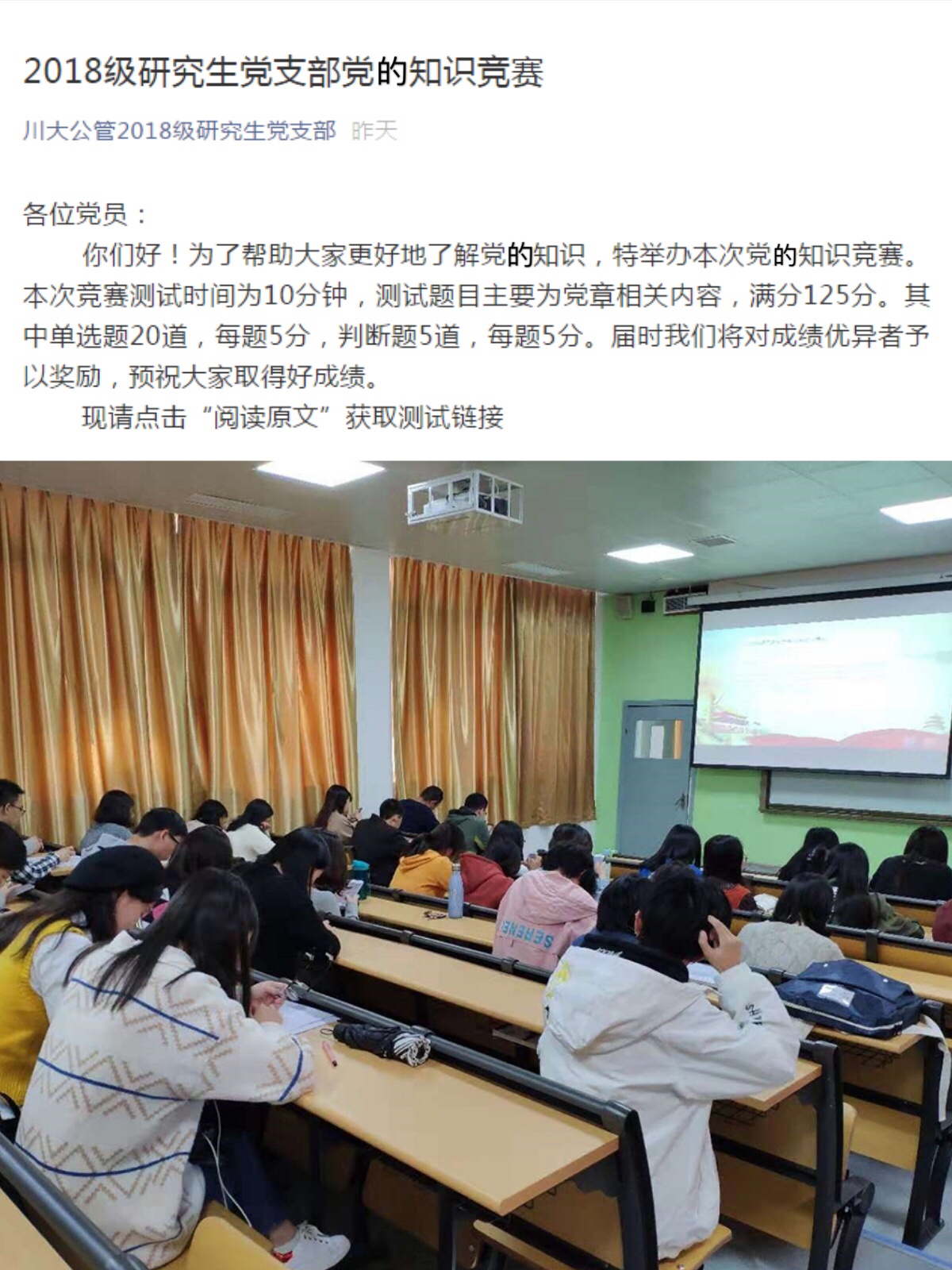 2018年10月31日下午13时,PA视讯游戏官网2018级研究生党支部在望江东区第三教学楼149教室开展了 “弘扬红色文化 传承爱国精神”红色印记知识竞赛。