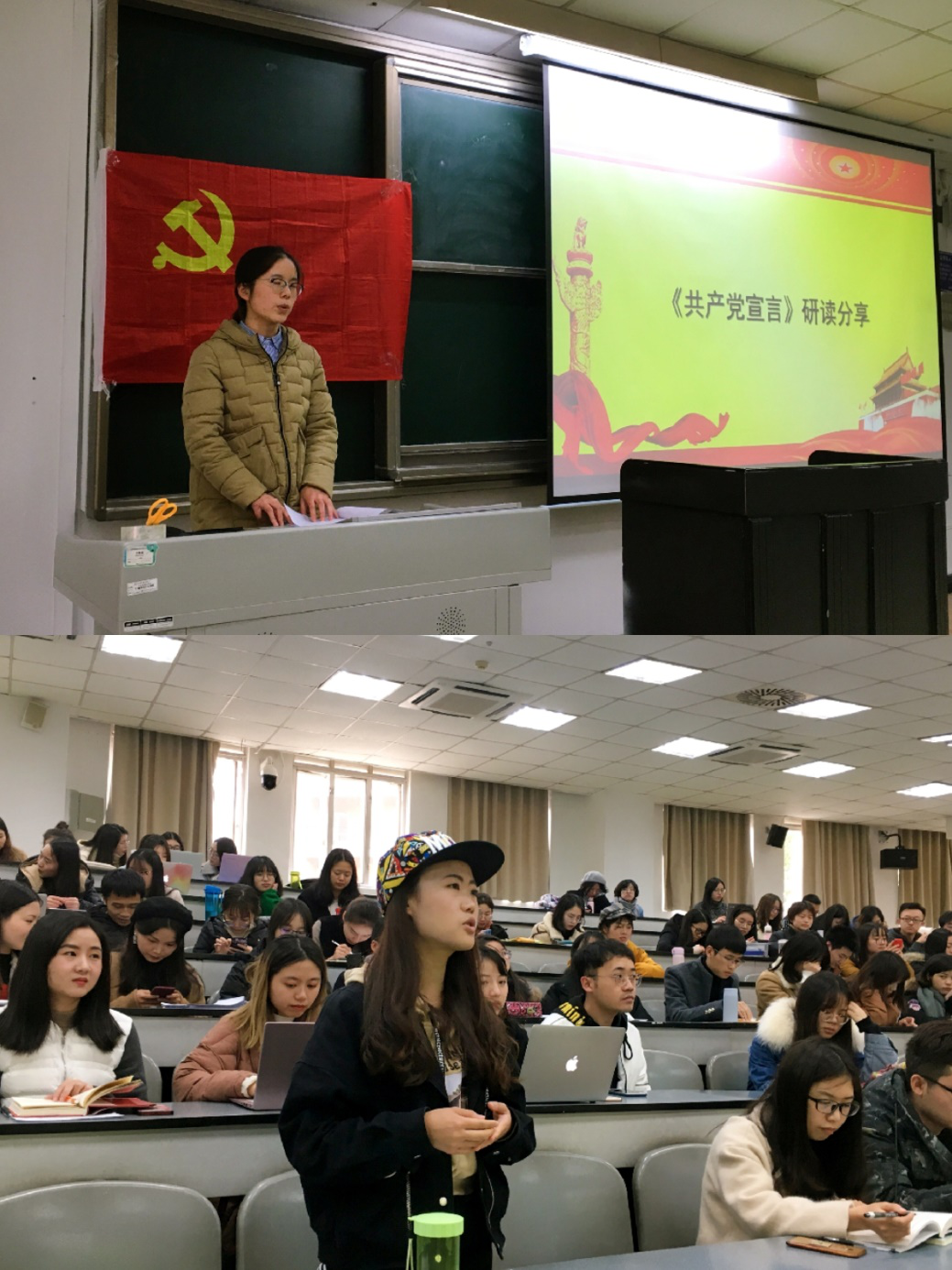 随后,全体党员进入“红色经典”名著研读——《共产党宣言》的学习环节。“红色经典”名著研读活动依托第三支部哲学和宗教学专业党员同志开展,将党建工作与专著研读学习相融合。首先,由PA视讯游戏官网2018级研究生第三支部韩洁同志进行《共产党宣言》研读。韩洁同志指出,共产党宣言的诞生标志着马克思主义的诞生,对全世界的无产阶级革命运动起了巨大的推动作用。她从马克思、恩格斯的生平、著作的写作背景、著作的引言和正文四章全面、多维度阐释了《共产党宣言》,并结合我国特点,提出了对新时代中国特色社会主义建设的建议。