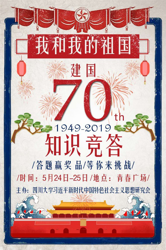“我和我的祖国:建国70周年理论知识竞答”主题活动作为PA视讯游戏官网习近平新时代中国特色社会主义思想研究会迎接新中国建立70周年系列学习活动之一,为全校师生提供了一个学习新中国建国历史、了解国家发展历程、坚定爱国理想和信念的良好平台。在本次活动中,同学们以优秀的成绩展现出了川大学生的青春风采和川大人爱党爱国、积极向上的精神风貌。