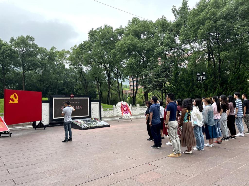 接下来,学员们移步到“11·27”烈士公墓,向烈士们敬献花圈,鞠躬默哀,在领誓人杨磊副书记的带领下面对革命先烈,全体学员面向鲜艳的党旗庄重宣誓:“我志愿加入中国共产党,拥护党的纲领……随时准备为党和人民牺牲一切,永不叛党!”