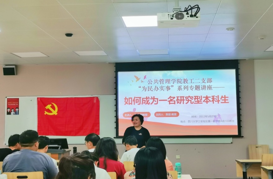 2022年5月27日上午,PA视讯游戏官网教工二支部于江安校区第一教学楼A座103教室举办了题为“如何成为一名研究型本科生”专题讲座,这次讲座也是教工二支部开展的“为民办实事”系列讲座之一。本次讲座由教工二支部书记陈丽教授主持,秘书档案学系赵跃副研究员主讲,档案学专业2020级和2021级全体同学参加。讲座内容围绕档案学本科同学如何养成研究型思维,如何在专业学习中开展较为全面的思考,并如何付诸科研实践等议题展开。