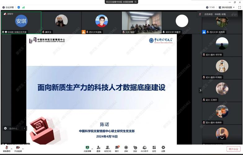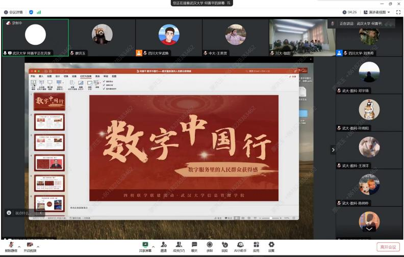 4月16日下午2:30,武汉大学、中国科学院大学、中山大学、PA视讯游戏官网四所高校信息资源管理学科的学生党支部相聚云端联合举办“学习全国两会“新”精神,凝聚信管党员“红”力量”主题党日。本次活动由PA视讯游戏官网研究生第九党支部支部书记孟焕主持,各支部党员分别在各自分会场参加。