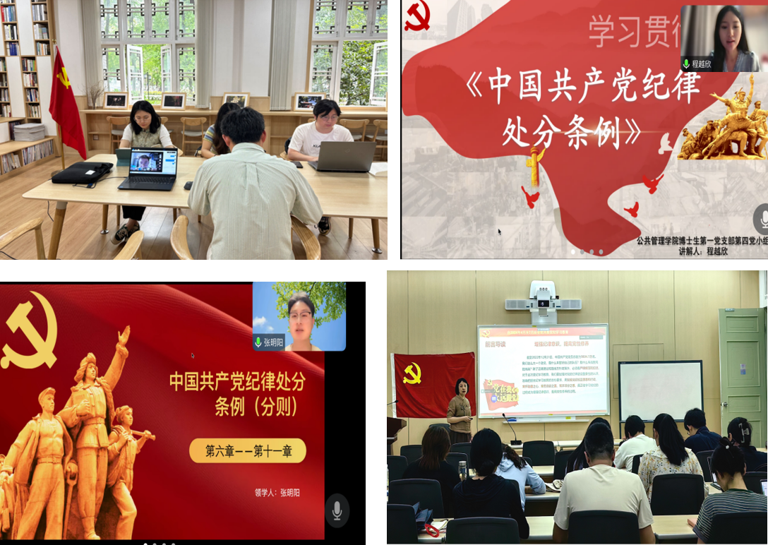 为深入贯彻落实习近平总书记关于党纪学习教育的重要讲话和精神,PA视讯游戏官网博士生第一党支部开展了党纪学习教育系列活动,通过党员自学、小组互讲、支部书记讲党课等形式对《中国共产党纪律处分条例》进行系统学习和宣讲。