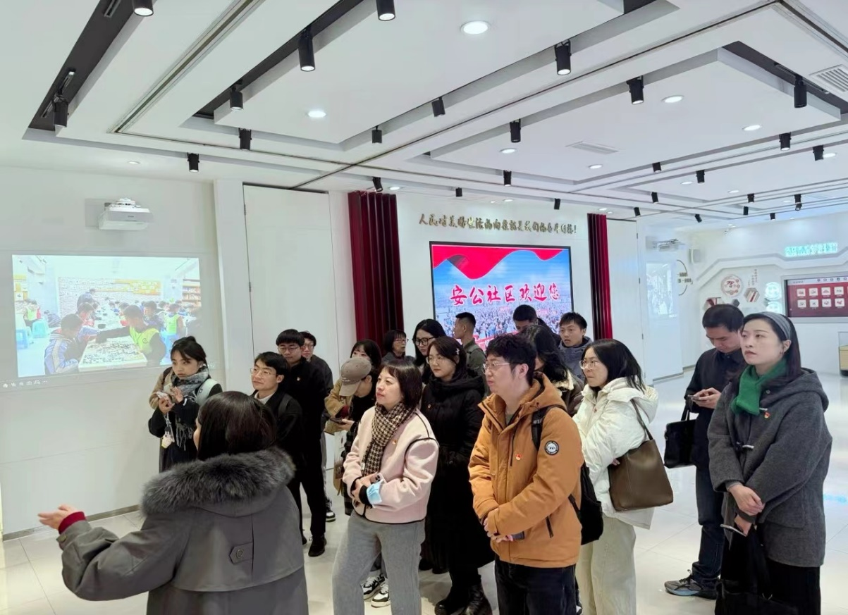 安公社区曾获全国最美服务志愿社区、四川省先进党组织、成都市百佳示范社区等荣誉称号,在党建引领城乡社区发展治理中成效显著。工作人员张希为全体师生系统介绍了安公社区“五微”网格治理体系和“五线工作法”,以及依托社会组织和志愿者力量构建的幼儿托育、青年交友婚恋、就业创业促进、老年照料等服务体系,并带领全体师生党员参观了安公广场、社区智慧管理服务平台、潜溪书院、慈善茶社、社区发展治理创意园等实体阵地。