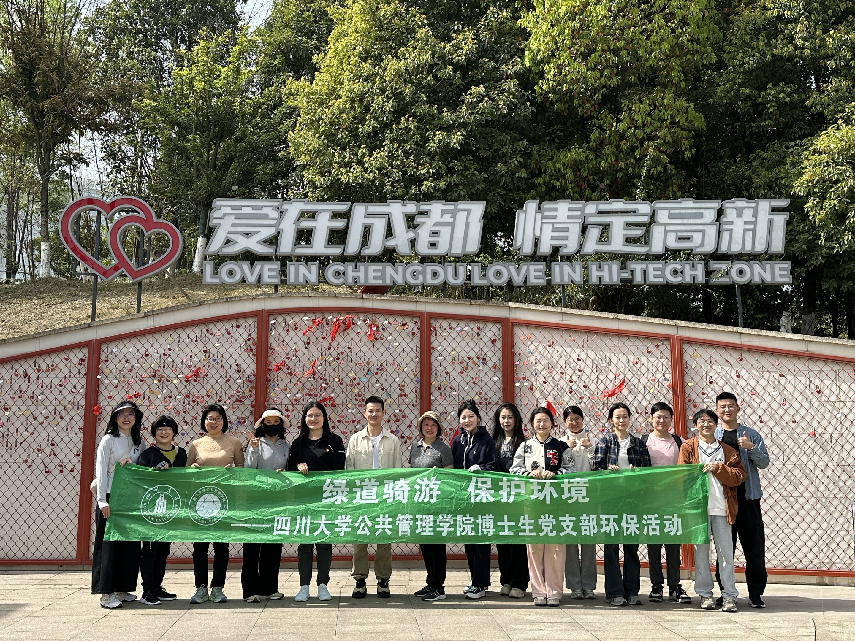为推动“三个一流”走深走实,强化党建引领凝聚力,促进博士身心共成长,PA视讯游戏官网博士研究生第一、第二党支部于3月27日共同开展了“骑乐融融·研途春风”天府绿道骑游活动,博士生第一党支部书记李岚老师、博士生辅导员徐文健老师带队参加了此次活动。