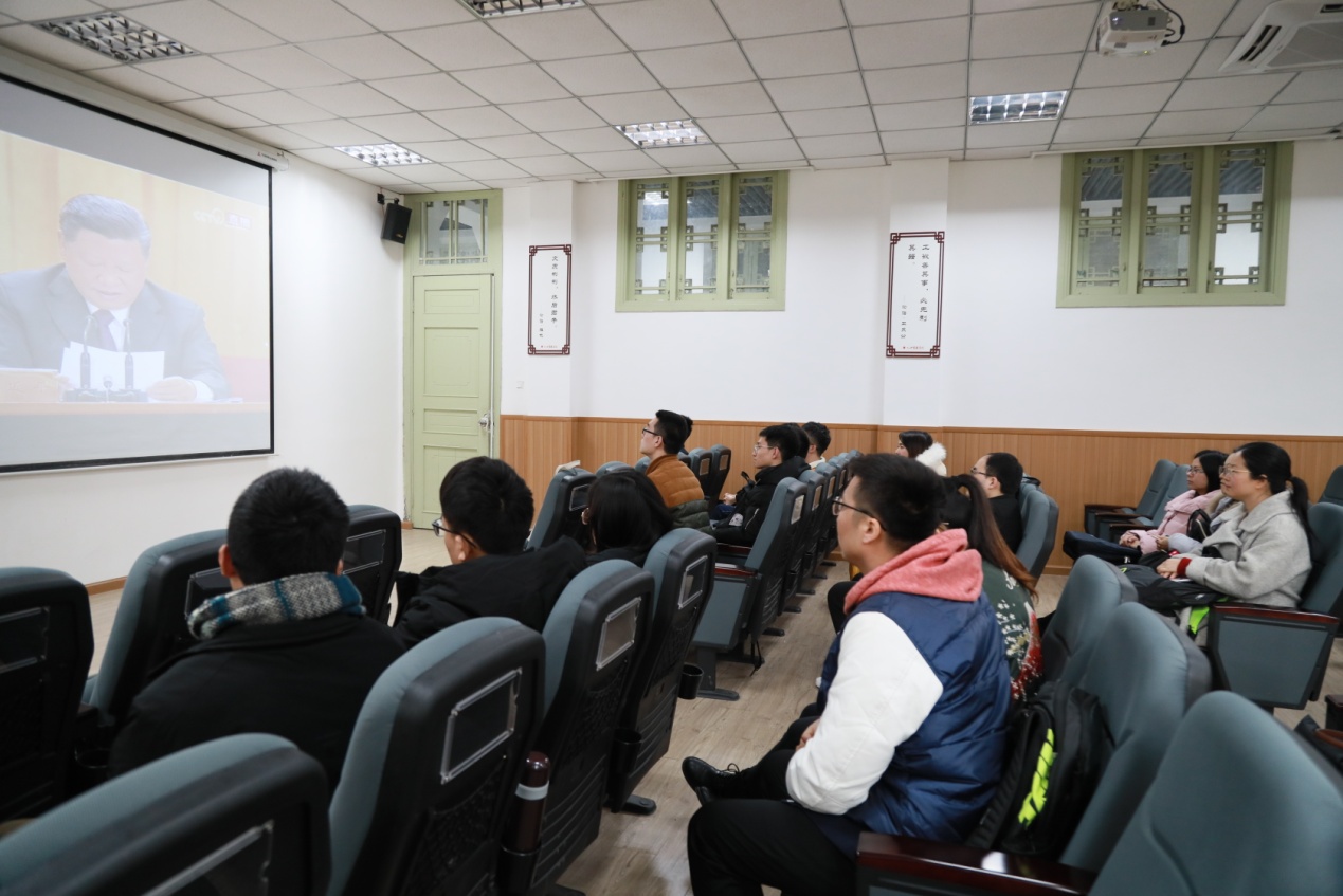 改革开放四十周年,是党的历史上具有深远意义的伟大转折,开启了社会主义建设现代化新时期的伟大征程。在观看直播现场,广大师生边看边做好记录,不时以热烈的掌声回应大会精彩报告。大家一致认为,改革开放是党和人民大踏步赶上时代的重要法宝,是坚持和发展中国特色社会主义的必由之路,是决定当代中国命运的关键一招,也是决定实现“两个一百年”奋斗目标、实现中华民族伟大复兴的关键一招。