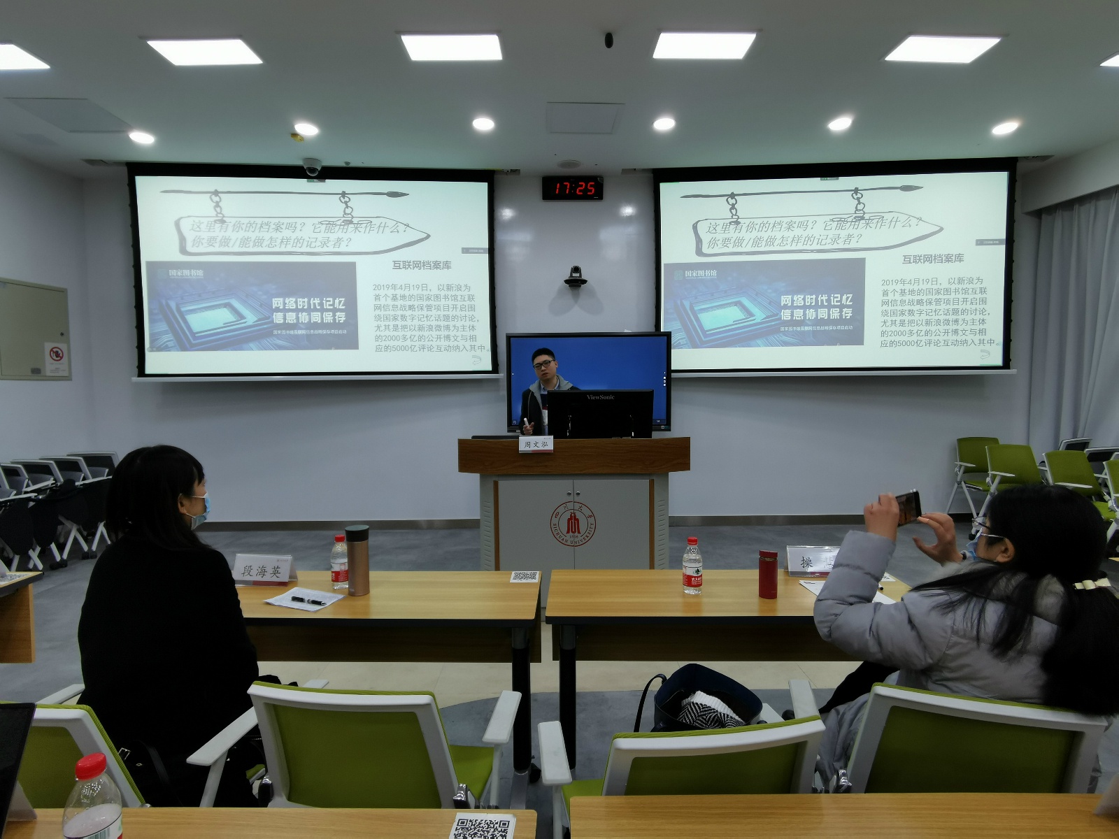 周文泓老师指出,课程思政无处不在,本质是通过教学引导学生为建构更好的个体、国家、社会、人类世界寻获知识与方法,思政作为问题导向与价值引领的要义应融合于教学的方方面面。他以课程《档案学概论》为例,提出国家治理能力现代化、人类网络命运共同体建设等为教学提供了为什么教、教怎样的知识,如何将静态专业知识活化并应用、怎样将知识学习变为方法建构的探究式能力培育。随之,他以课程中的“身边的档案/档案管理”线下调研、“以未来致敬经典”学术海报展、“新冠肺炎疫情社交媒体档案未来展”“重大社会事件社交媒体信息存档”教学案例平台等“未来档案员”系列教学活动为例,呈现了课程思政如何用于具化教学场景、拓展教学空间、推进教学相长、将教学延伸为学生从专业学习到服务社会的产出、学生的学习成果拓展为从课堂教学到项目获奖等。最后,他将课程思政总结为教学持续演进的动力源,需要在未来的教学中更加充分地融合。