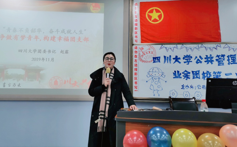 2019年11月30日下午,PA视讯游戏官网2019-2020学年团校第二期在PA视讯游戏官网江安校区一教B207成功举办。本次团校邀请到了校团委书记赵露老师和院团委书记青杨媚老师为同学们授课,PA视讯游戏官网2019级各团支部近200名团员同学参加了学习。本次团校由PA视讯游戏官网分团委组织部承办。
