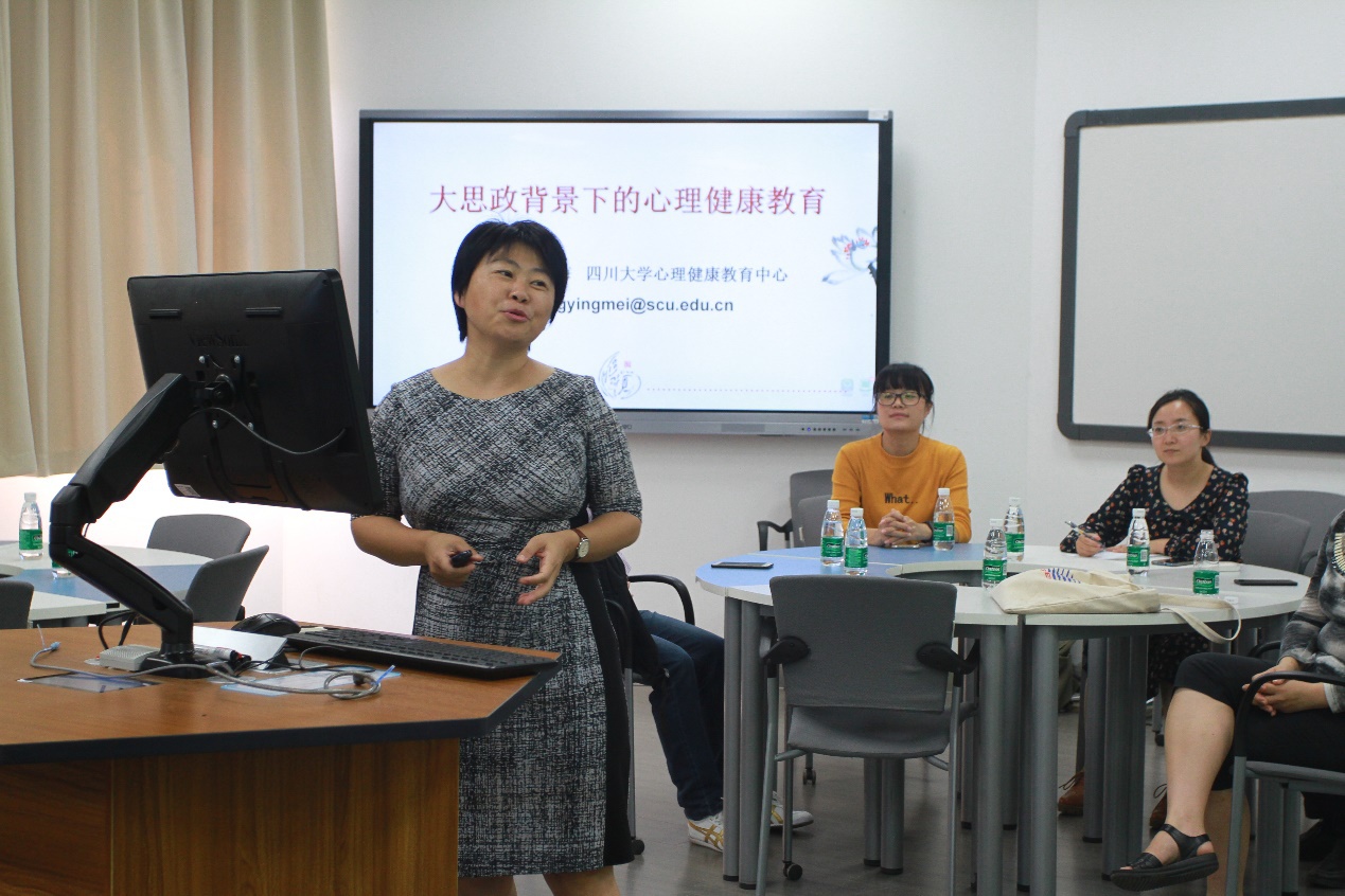 PA视讯游戏官网心理健康教育中心副主任王英梅教授作了《大思政背景下的心理健康教育》主题培训。她结合心理学专业知识、调查数据、典型案例等生动而形象地对大学生心理健康工作领域、心理健康状态、心理健康标准、精神状况等进行了深入分析,对如何发现大学生情绪与行为障碍以及作为班主任如何应对和专业化处理作了详细阐释。