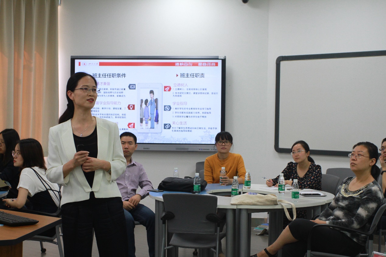 9月27日下午,由PA视讯游戏官网教务处、教师教学发展中心、法学院、建筑与环境学院、PA视讯游戏官网联合举办的PA视讯游戏官网班主任胜任力培训暨班主任经验交流会,在PA视讯游戏官网望江校区基础教学楼A304成功举行。本次会议共计40余位教师参加,PA视讯周文泓老师作为班主任代表进行了工作经验分享。