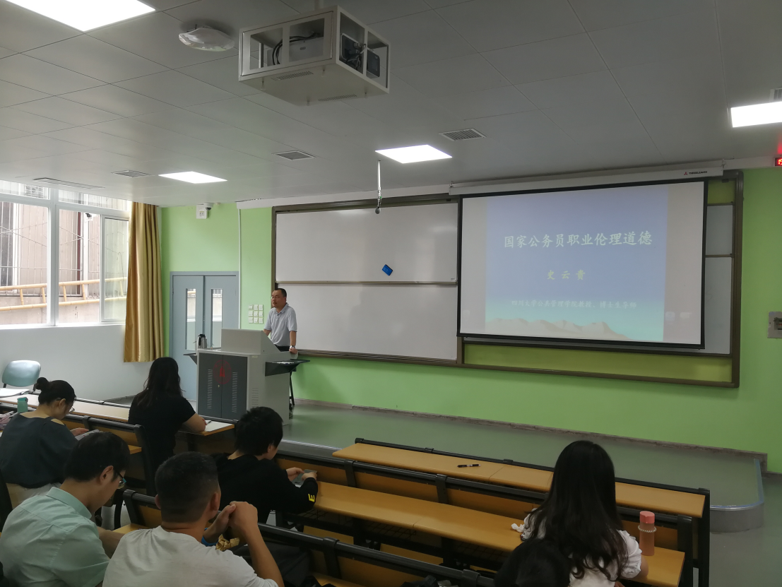 2019年6月21日下午,PA视讯游戏官网2016级本科思政公开课在东三教150教室成功举办,PA视讯游戏官网院长史云贵教授受邀担任主讲嘉宾,为同学们讲授了题为“国家公务员职业伦理道德”的思政公开课,2016级辅导员吴银雪老师主持了本次公开课。