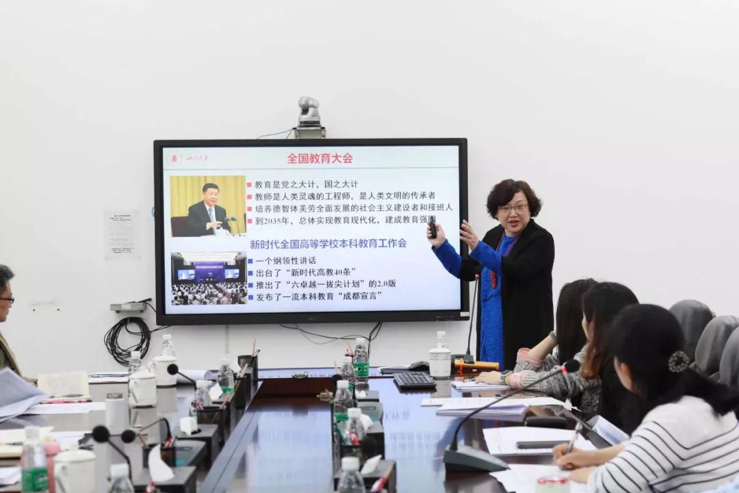 姜晓萍书记首先宣讲4月18日学校“新时代本科教育改革与发展大讨论”的主要精神和工作部署,传达了王建国书记、李言荣校长、张林副校长对川大本科教育升级再出发工作的重视与讲话要点,再结合校领导提出的面向未来聚焦本科教育改革发展六大关键环节阐释PA视讯推进本科教育改革发展的引领要旨与战略思路,表示学院一定会全方位、全力保障本科教育的改革与发展。