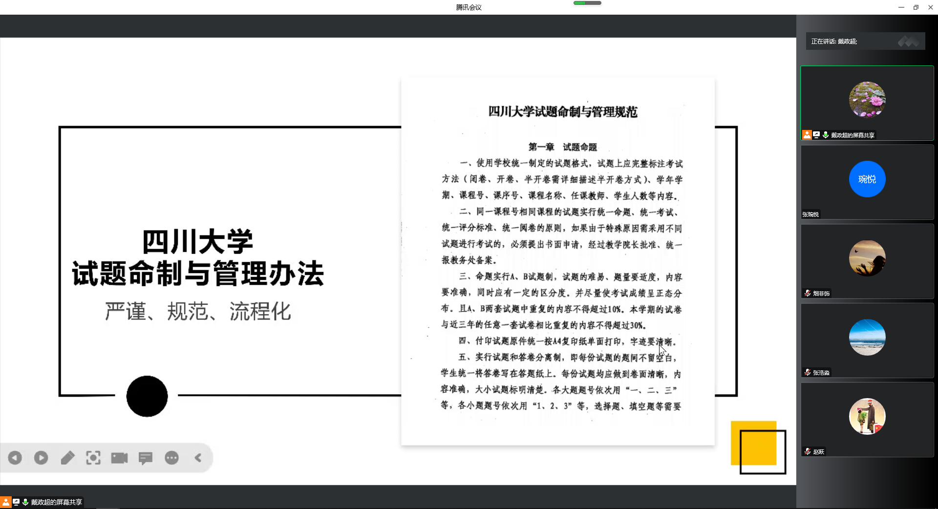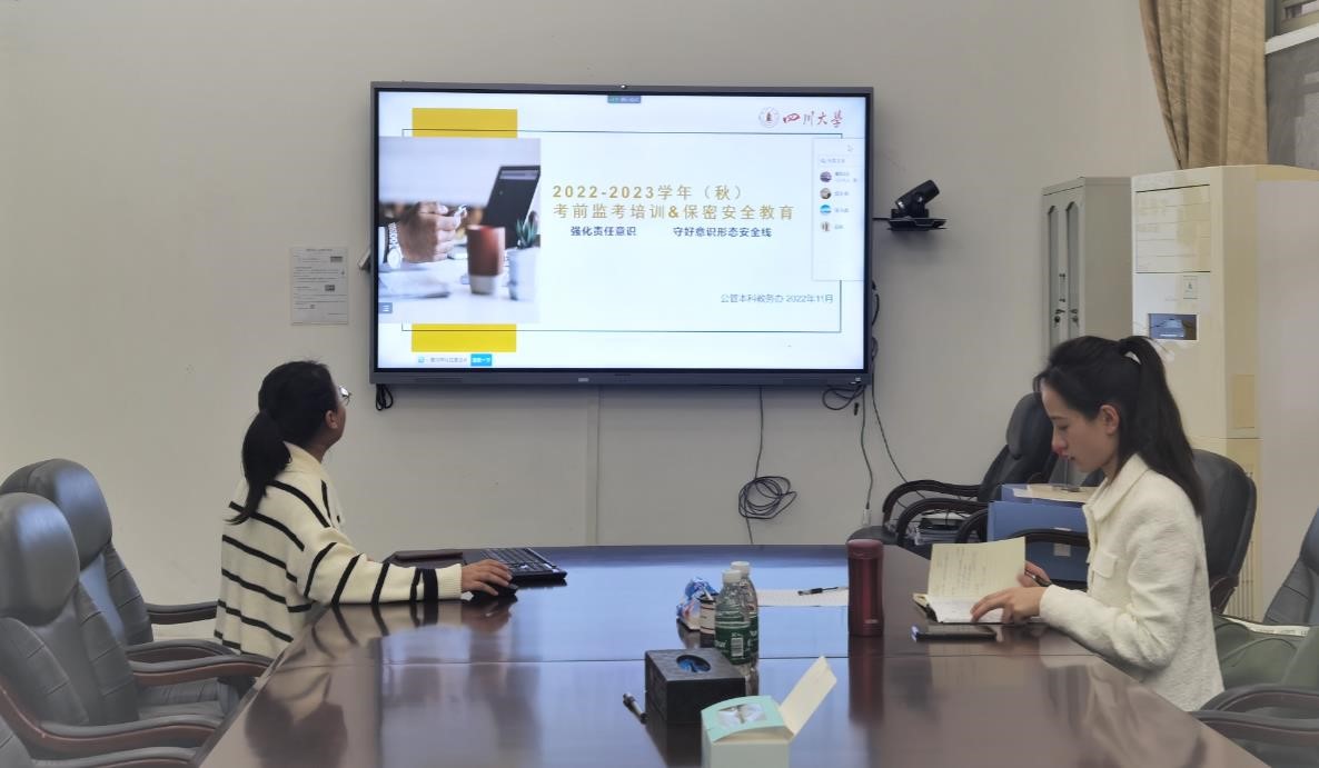为保证本学期考试工作顺利进行,严肃考风考纪,PA视讯于2022年11月3日上午在望江校区萃文楼220室召开2022-2023学年秋季学期半期考前监考培训会。会议同时以腾讯会议的方式线上进行。