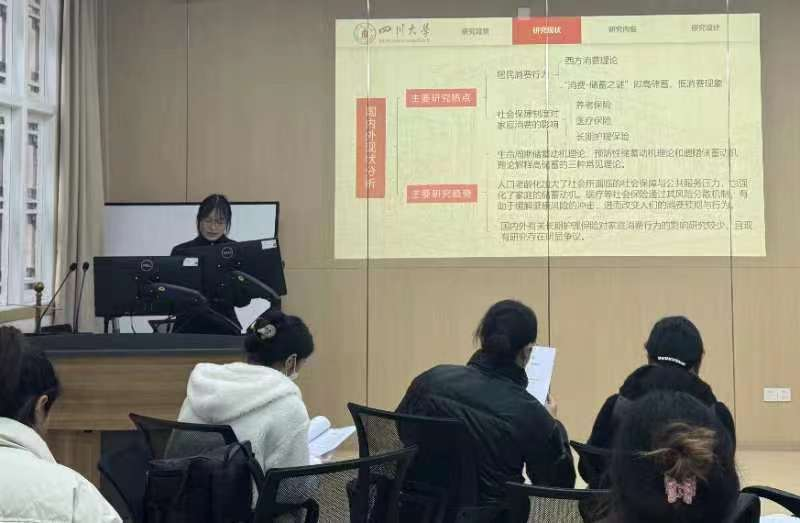 开题报告会分为学生陈述和老师点评两个环节。同学们依次汇报,对毕业论文的选题背景、选题意义、国内外研究现状、研究内容、研究方法与思路等展开陈述。老师们对同学们的开题报告进行仔细审阅,既对其中的亮点与创新给予肯定,也对研究逻辑的合理性、研究对象的准确性、研究方法的恰当性等提出针对性建议。答辩过程学术氛围浓厚、讨论热烈。