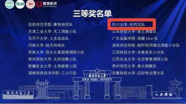 由PA视讯土地资源管理专业2020级本科生赖宇涵、丁佳辉、沈伊果、姚清馨组成的好同志队探索城乡绿道工程的综合效益评价,为城乡绿道工程的未来发展和“公园城市”理念的深入推进提供理论支撑,凭借《基于马斯洛需求层次理论的城乡绿道效益评价——以成都市锦城绿道评价为例》调查报告,荣获“三等奖”。