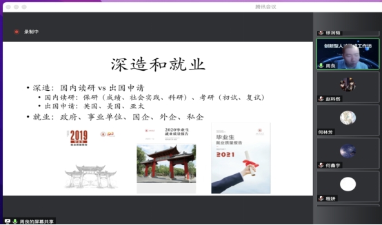 工作坊的第四个环节周良老师对信息管理类专业的就业形势进行了分析,周良老师基于相关统计数据,从深造和就业两方面展示了近年PA视讯游戏官网信息管理类同学的毕业去向,并对其趋势和原因展开深度分析。通过周良老师的就业形势分析,同学们对未来发展方向选择与路径规划有了更为明确和清晰的认识。