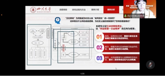 由PA视讯劳动与社会保障系沙治慧教授指导的《如何铸就失能老人幸福之路:成都市“长护险”制度发展进路和治理逻辑深描》以及由行政管理系李强彬教授指导的《“联”出余热,“益”起共担:“五社联动”以唤醒社区公益——以成都市“天府社区食物银行”为例》两部作品入选此次活动优秀案例分析报告,并于12月10日参加线上成果交流会,共论研究问题,共享研究成果。
