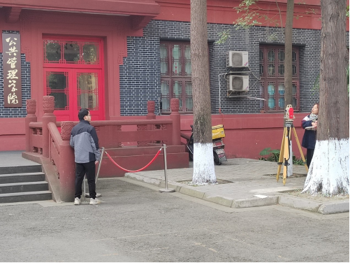 同学们在学院214教室聆听比赛注意事项后领取仪器前往指定测绘地点。各小组通过紧密的分工合作,架设仪器、对中整平、放置目标、校对调整等有序进行。认真严谨的态度真正做到了“步步有检核”。